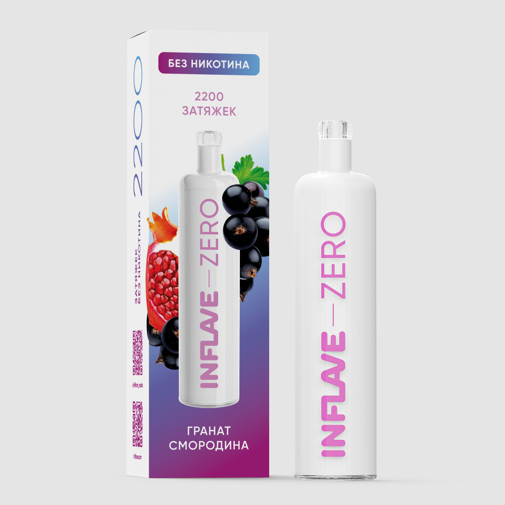 Электронная сигарета Inflave Zero 2200 затяжек Гранат Смородина со вкусом рубиновых зерен граната, смешанных со свежим вареньем из черной смородины.